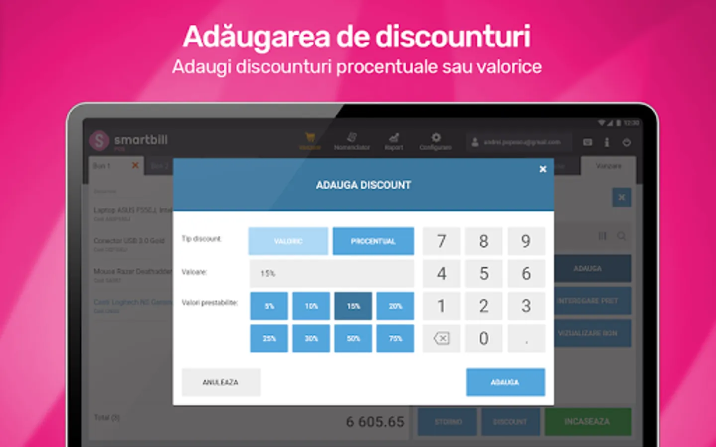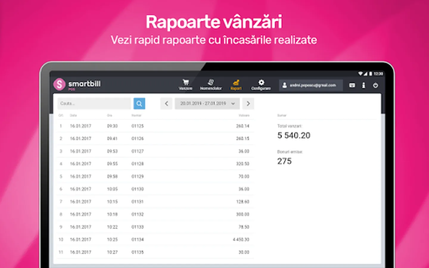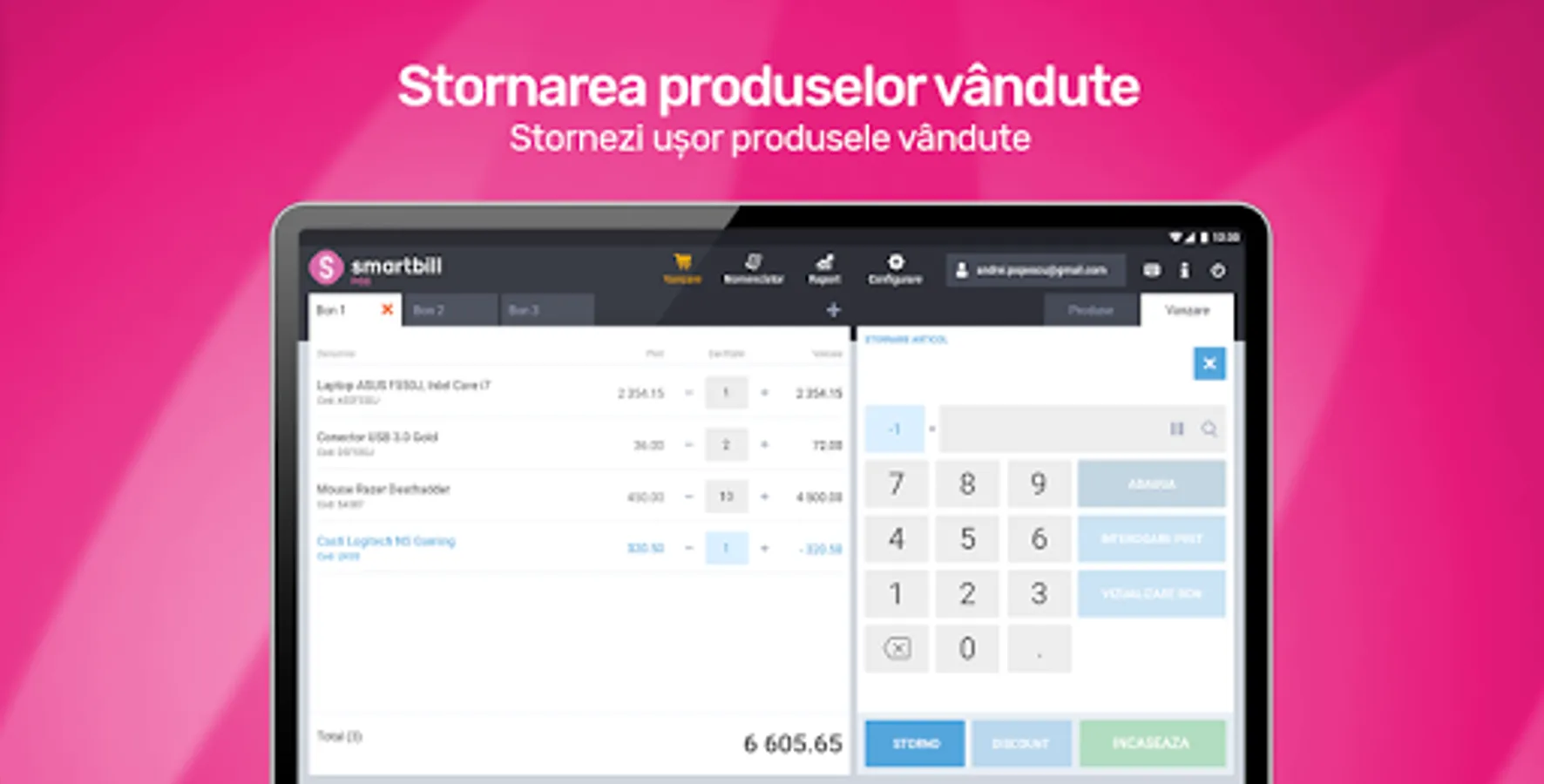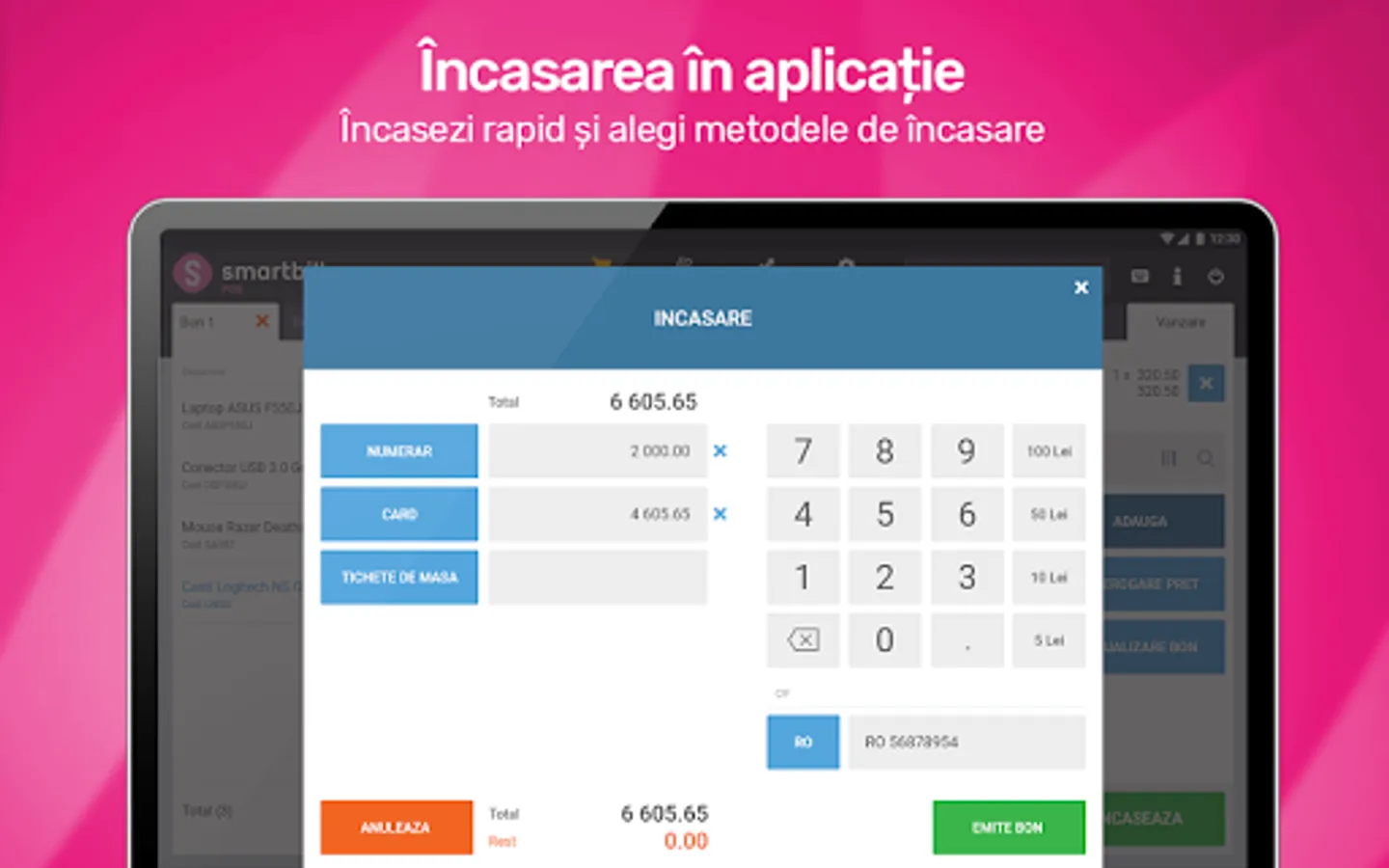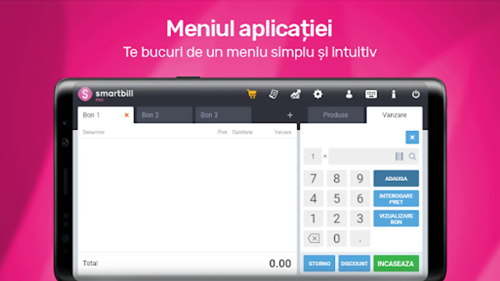 2. SmartBill POS + SmartBill Billing / Management : use the SmartBill POS application connected in real time to your SmartBill Billing / Management account and enjoy in addition the features of the billing / management program