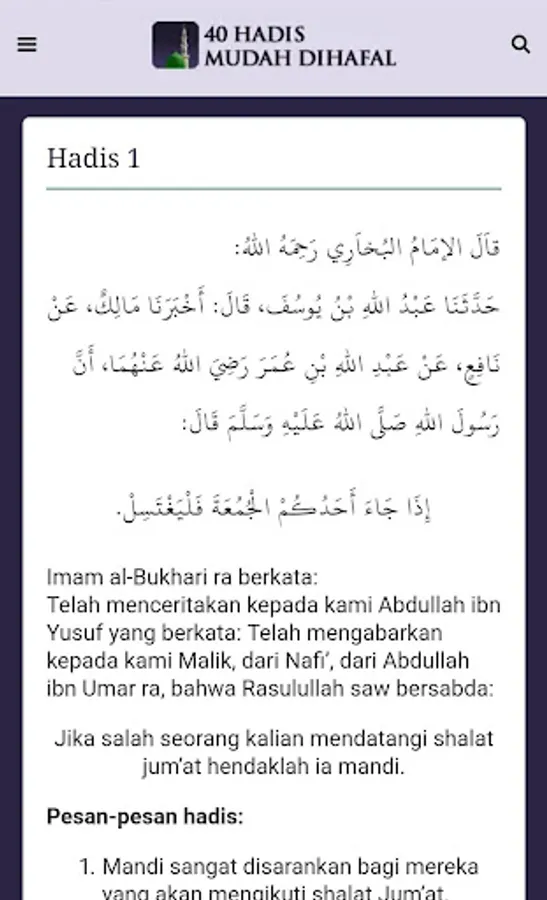 Memorizing Hadith, whatever, let alone the valid ones, let alone the sahih from the history of al-Bukhari, will be a wonderful memory. He will be a clue that we will continue to carry out as proof of us loving the Messenger of Allah, wanting to follow his Sunnah.