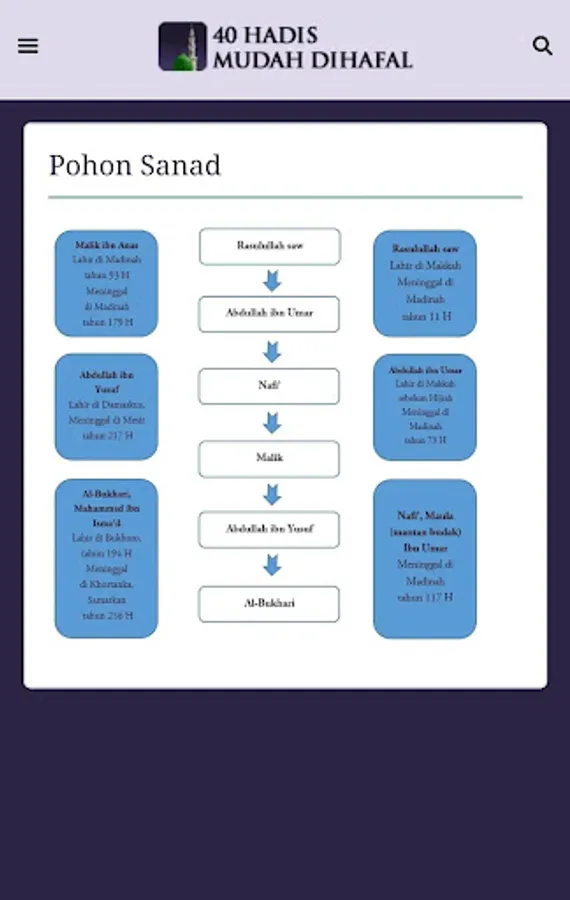 For us laymen, memorizing Hadith with its sanad is very difficult, especially for the sanad, it will often be exchanged. Therefore, in the book of these 40 hadiths, the author collects his traditions only through 1 path or 1 sanad. As a result, readers only need to memorize 1 lane for use in 40 traditions. Well, even this one author deliberately chose the short and easy to memorize.