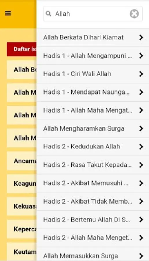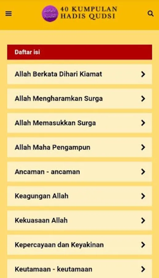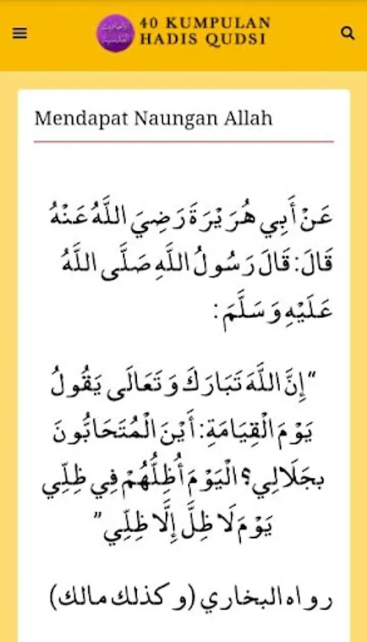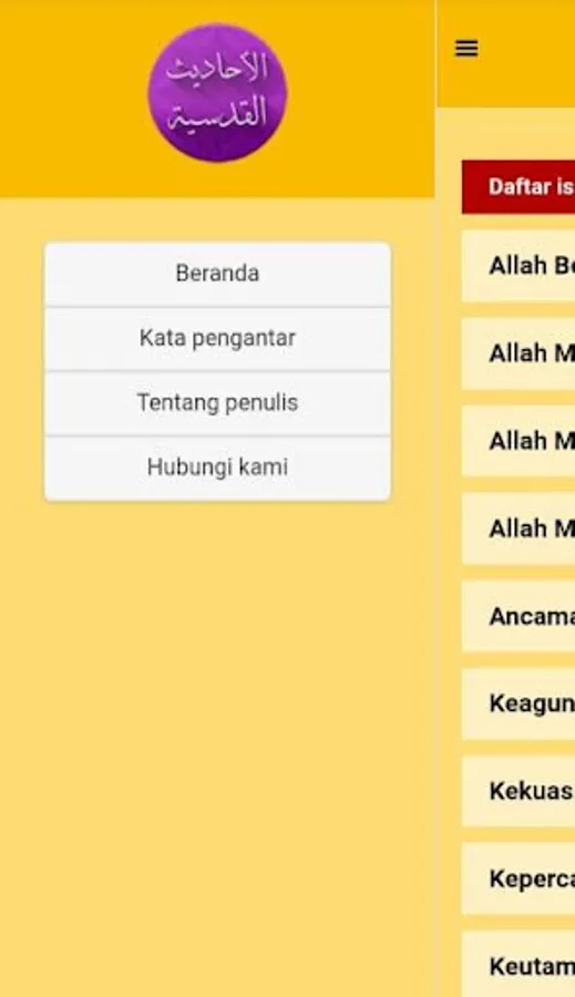 The results of making this application were made as one step to make it easier for Muslims to find a qudsi hadith that is needed. although this application is still very limited but the contents therein are sufficient to increase knowledge.