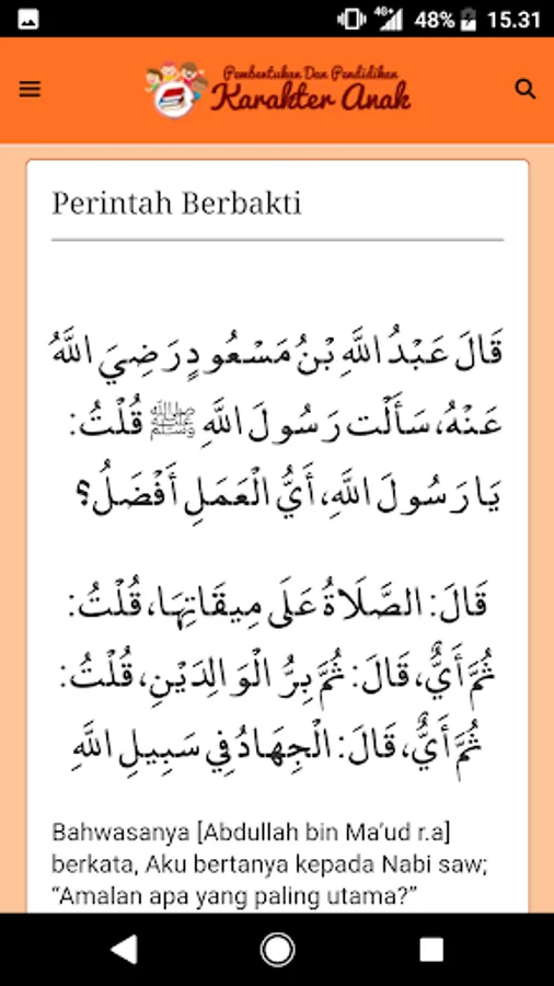 Ada sebuah kata mutiara dari Ibnu al-Qayyim al-Jauziyah, Barangsiapa yang dengan sengaja tidak mengajarkan apa yang bermanfaat bagi anaknya dan meninggalkannya begitu saja, berarti dia telah melakukan suatu kejahatan yang sangat besar. Kerusakan pada diri anak kebanyakan datang dari sisi orang tua yang meninggalkan mereka dan tidak mengajarkan kewajiban-kewajiban dalam agama.