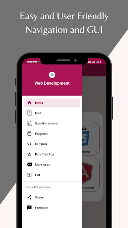Web Development app is all in one application to learn HTML, CSS, JavaScript, AngularJS.