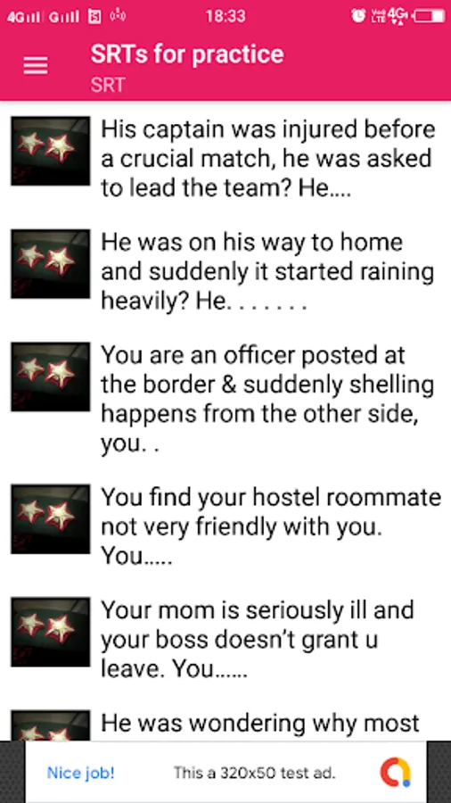 Situation reaction test is a very important test in the ssb .So we decide to provide free SRTs for practice.Here you will get more than 100 SRTs every month.In this app you can easily share these SRTs to your friends or teachers to ask.
