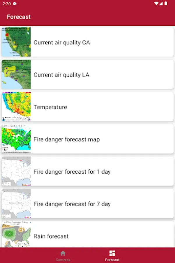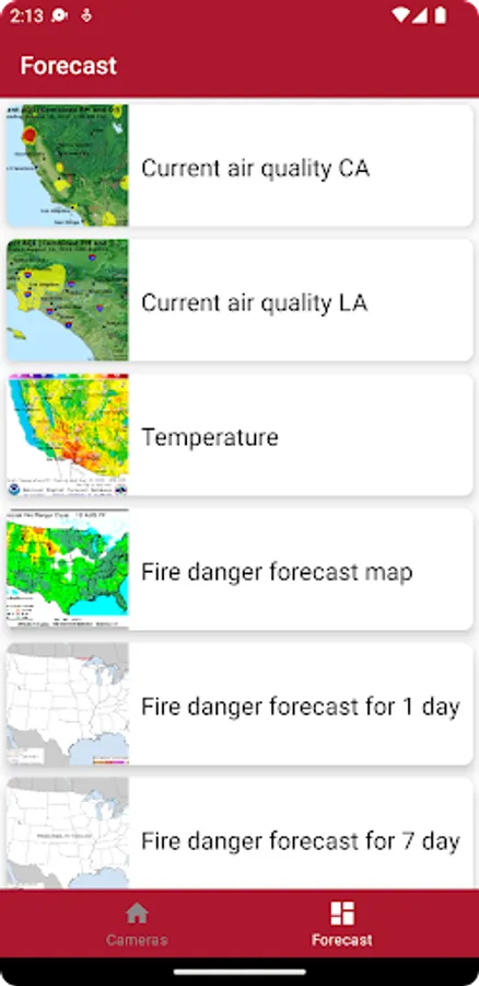 The app is designed to view fire cameras California. The cameras show the current state of the environment in California.