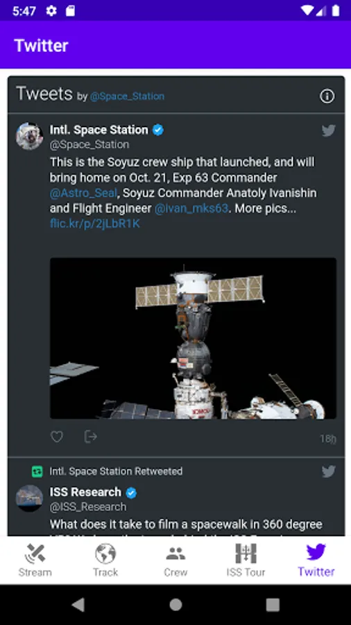 The application is useful to all who are interested in life on the international space station. The app has a lot of interesting things: ISS tracker, news from the station, live broadcast.