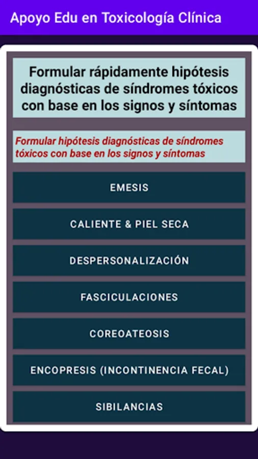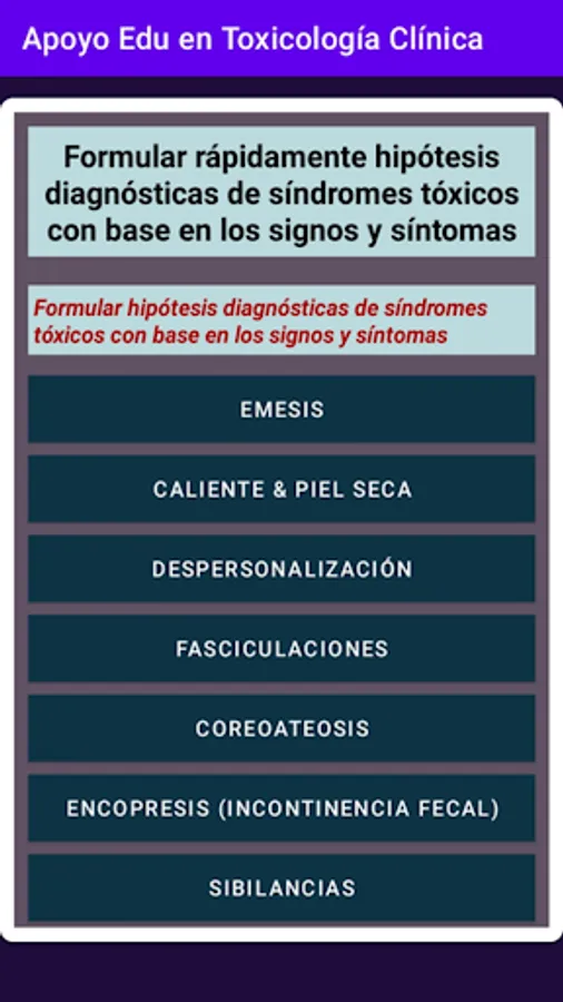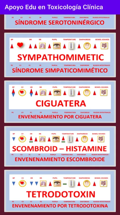 ApoyoEdu Clínica Toxicology is a memory aid for those toxicological syndromes, poisoning and withdrawal syndromes through signs and symptoms and some other incentives.