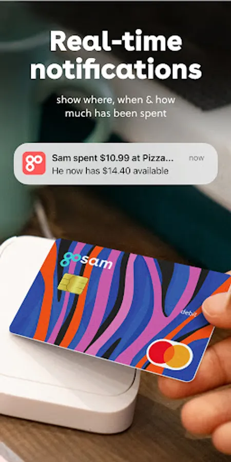 Real-time notifications let parents see where and how much is spent. Parents can also set one-time or weekly spending limits and choose where the card is used.
