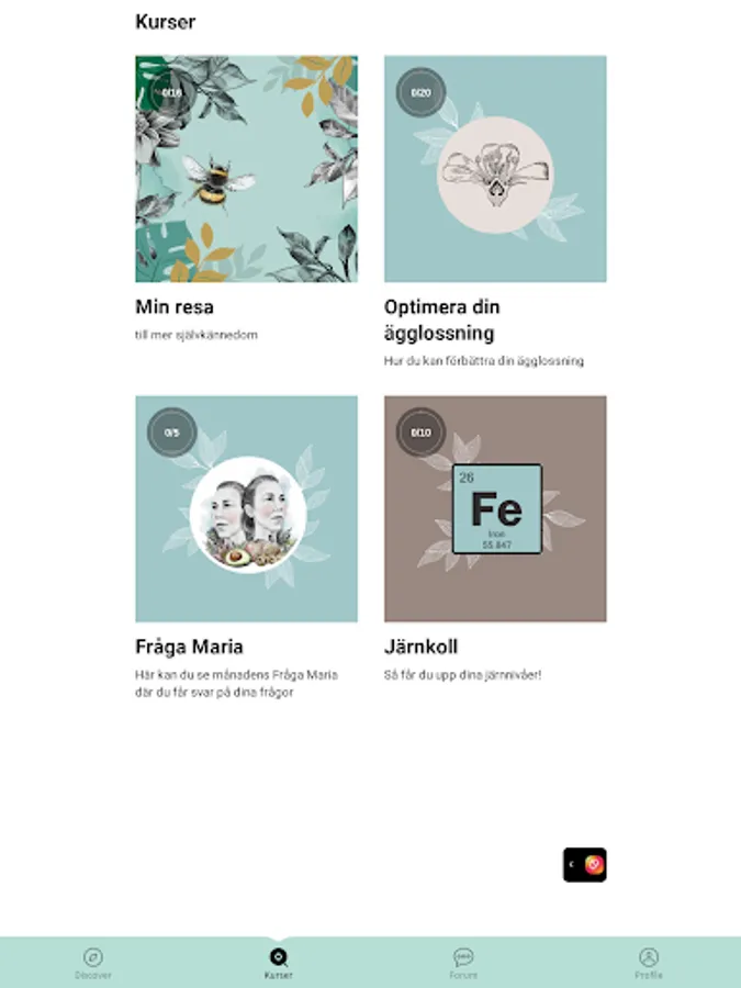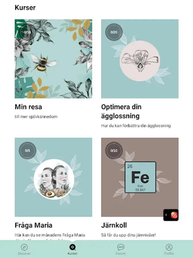 Inuti appen hittar du flera kurser inom kvinnohälsa.