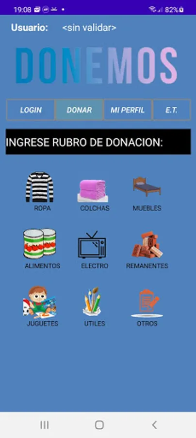Esta aplicacion permite unir a personas que ofrecen donaciones con instituciones oficiales de caridad reciben notificacion. La primera que lo demuestra interes contacta al donante al telefono registrado y coordinan la entrega en la forma que crean conveniente.