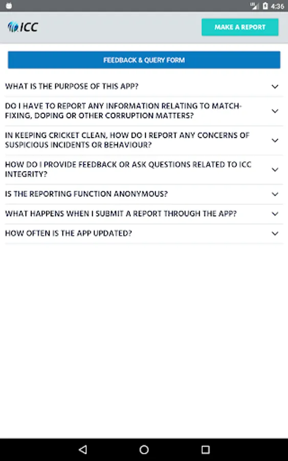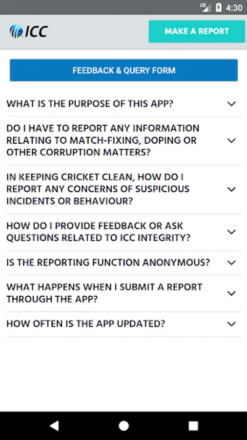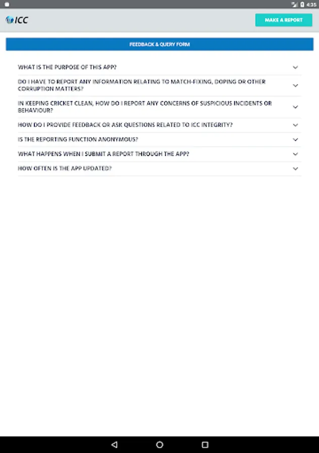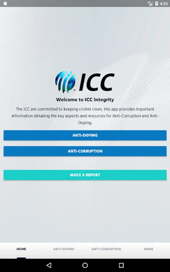 The ICC Integrity App has been developed as a support tool for all cricket Participants (including, without limitation, players, team staff, match-officials, player agents, curators and ICC staff and officials) to protect the spirit and integrity of the game.