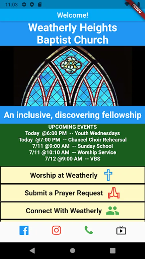 Welcome to Weatherly Heights Baptist Church - an inclusive, discovering fellowship. With our app, you can experience WHBC anywhere!