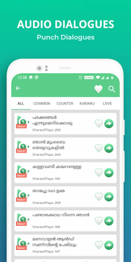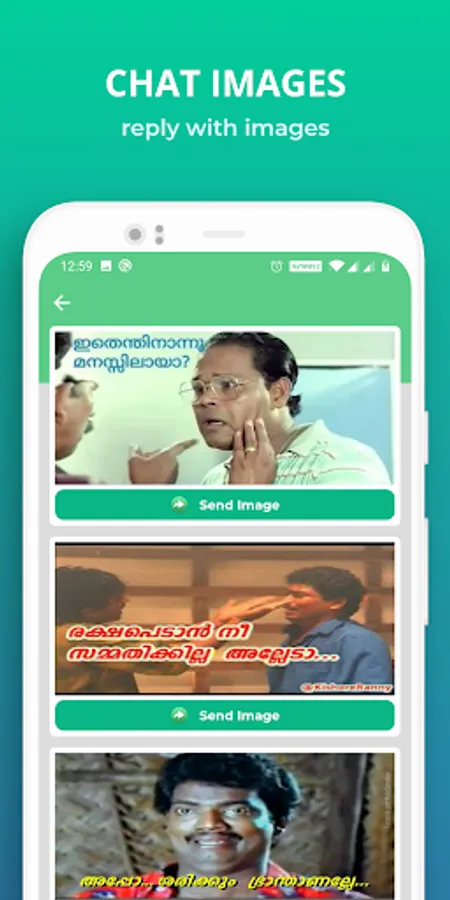 It includes malayalam audio punch dialogues which can be used to send comedy voice notes to whatsapp conversations.