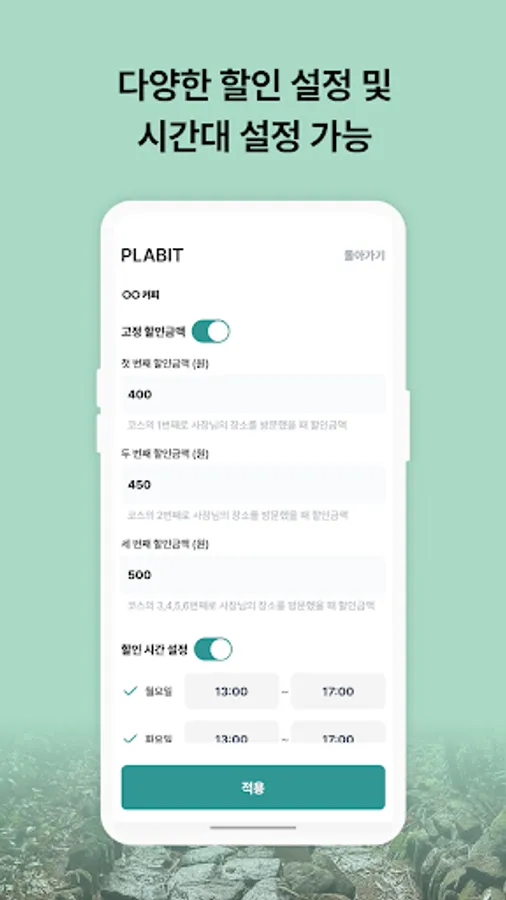 - Set a discount time to induce customers to visit during the desired time period.
