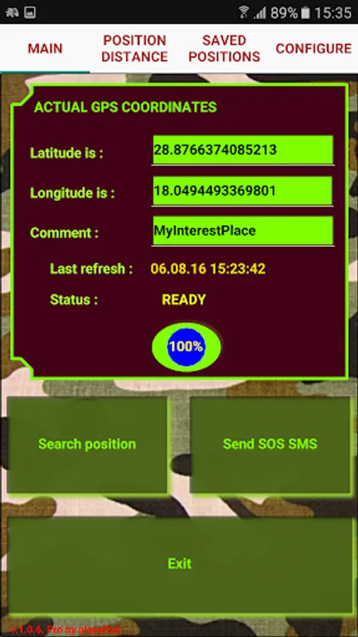 The PRO version gives more an even more accurate position because it is calculated as the average or triangulation of three individual GPS values. The PRO version allows for the storage of locations using common names you provide and recognize.