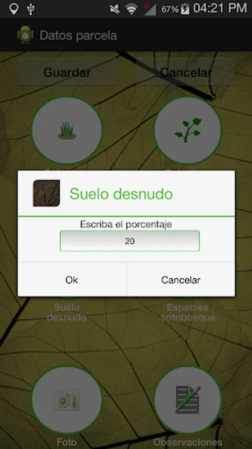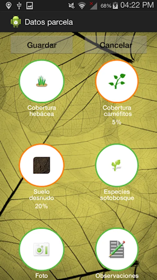 The forest pests application has functions to send data from stations study of forest pests in the region of Murcia. The data that can be sent are; type, number and photographs insects. Trees: tree name, height, dendróm, dead drink, shade, defoliation, discolouration, type of damage and photography, among others.