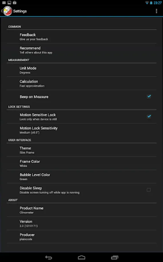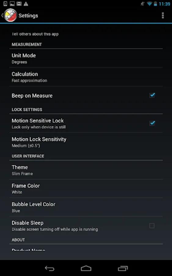 The best and most accurate level Android. This is the first version, that has a unique two way calibration! With that you can calibrate your device even on non-level surfaces.