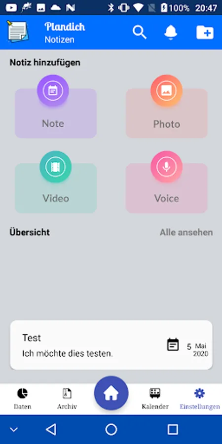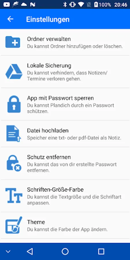 Plandich manages notes and appointments. The app offers many possibilities to save and save notes and appointments. If desired, notes can be created with a folder. Notes can also be intelligently linked to the calendar. Everyone has their own way of working with notes and appointments, with Plandich you can decide for yourself how to process notes and appointments efficiently. Your data is stored locally on the smartphone. You can create backups.