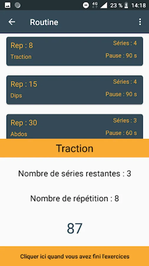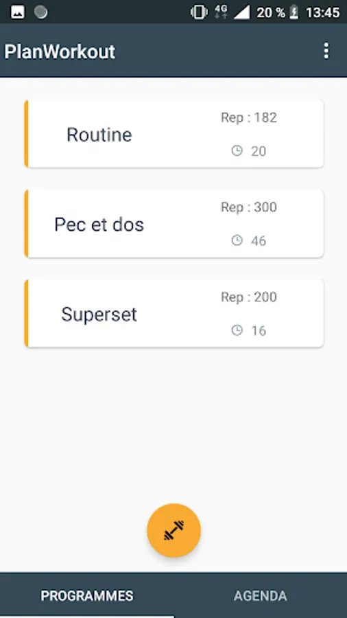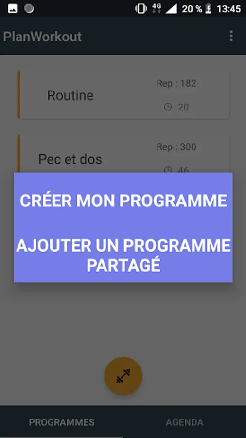With PlanWorkout, you can create your sports programs and store them online, as well as share your friends. Once created, you can launch them and according to the indicated pause time, the application tells you each time you have to do a new exercise.