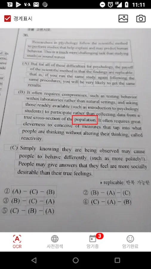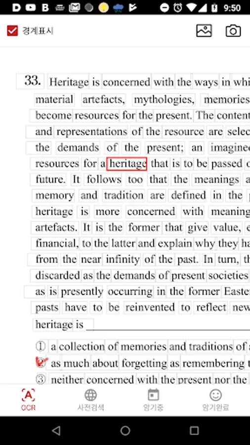 When you take a picture of English fingerprint in a book or a workbook, you can speed up dictionary search and card creation.