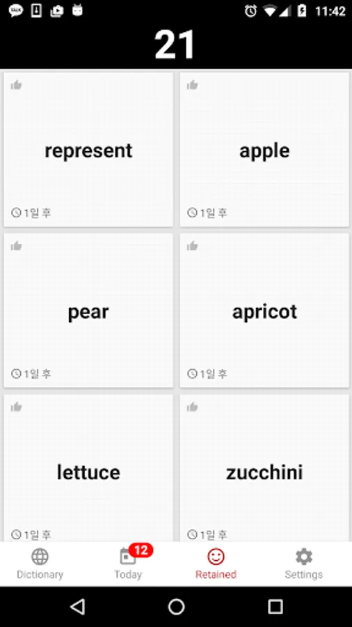These words will be taken back to the list of cards to study again after each set time for each card.