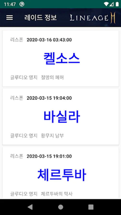 In Lineage 2M, we provide a boss regen time sharing and notification service between blood sources.