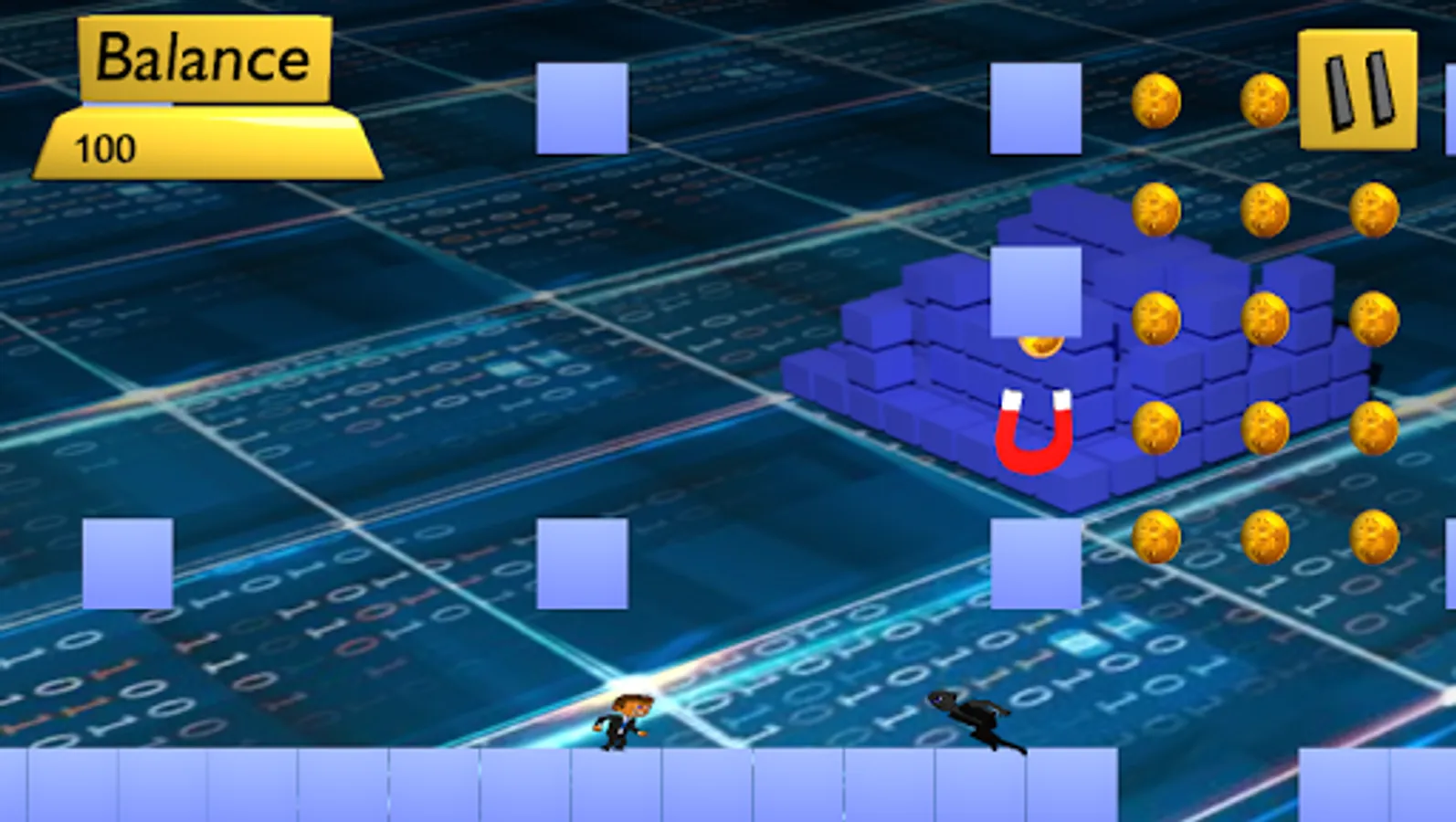Run and collect as many Bitcoins as possible.Pick the magnet, to attract all the Bitcoins close to you.