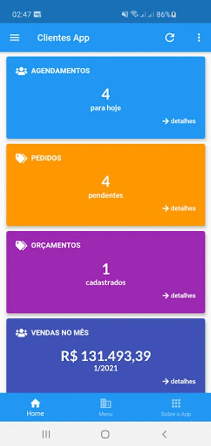 Application developed for the control of Clients, Agenda, Sales, Orders, Budgets.