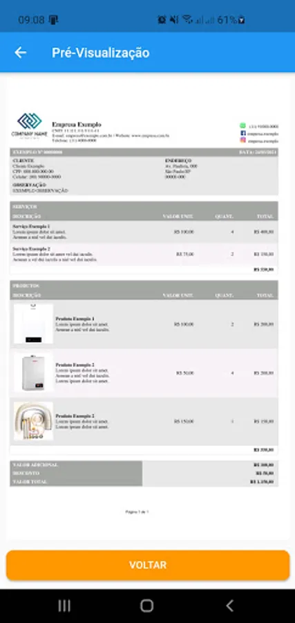 - Generation of the order in PDF format for sharing with the client;