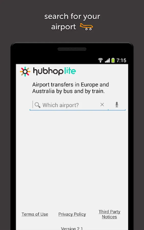 Hubhop lets you navigate a city's public transport system to get you to and from the airport and avoid traffic congestion, confusion about destinations, super-sized fares and the unpredictability of taxicabs.
