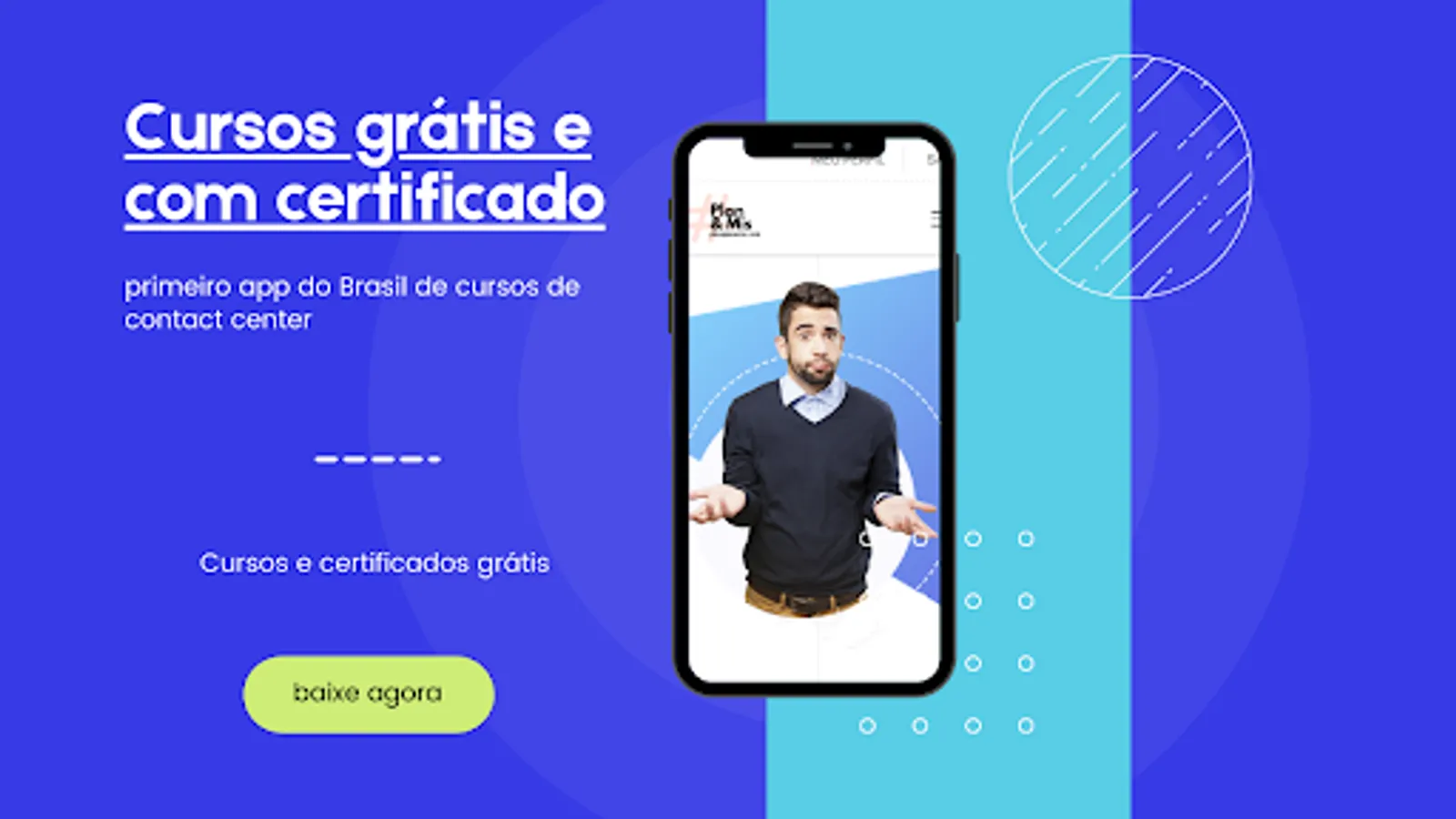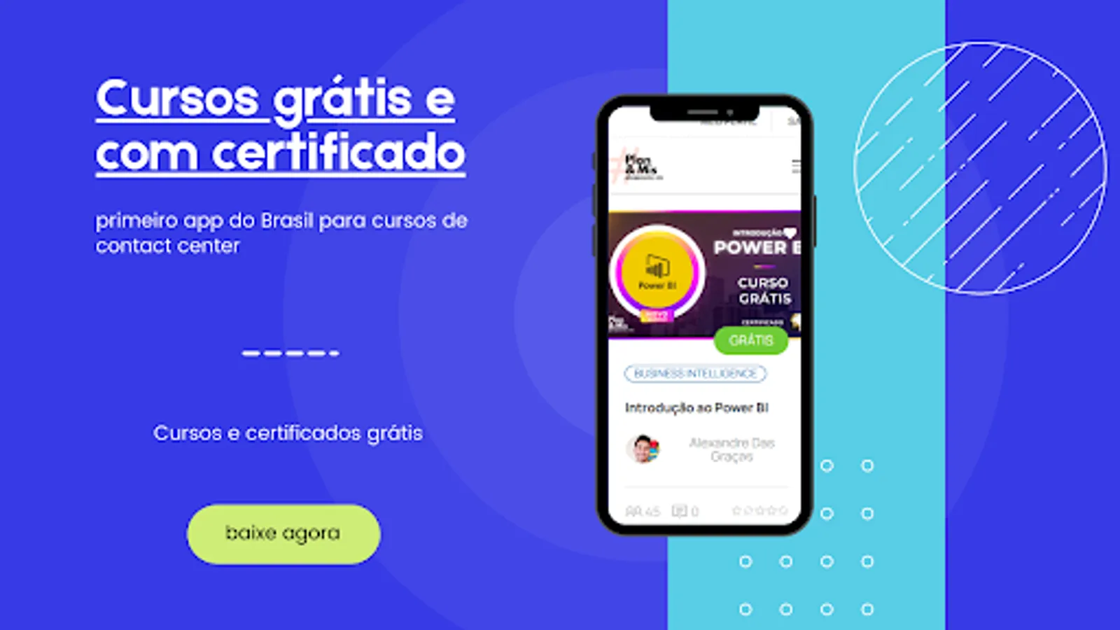 The application allows you to attend free classes and issue a certificate, follow the main subjects, job vacancies, stimulating interactive participation between students and teachers through chat, educational quizzes and video collaboration.