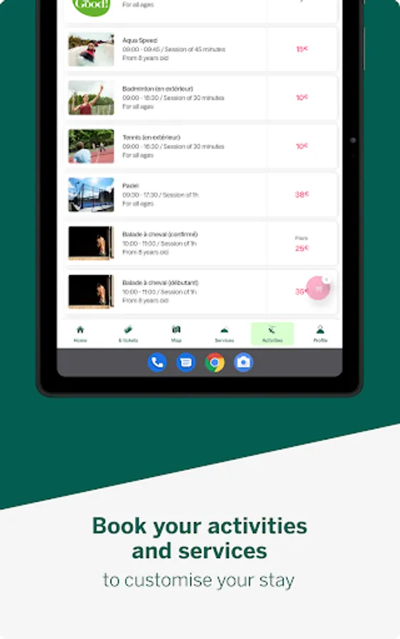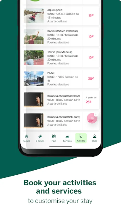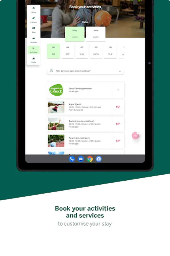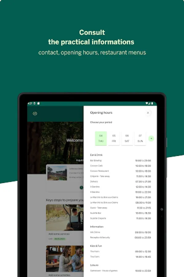 BOOK SERVICES: rent bikes, choose your cottage location, book a full board at the restaurant, have a meal delivered…