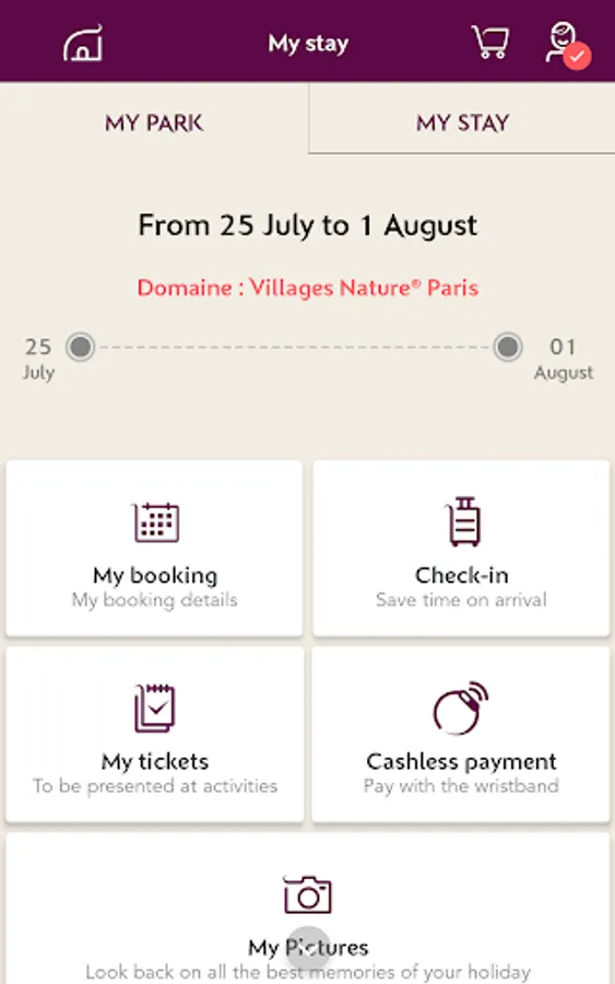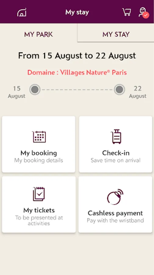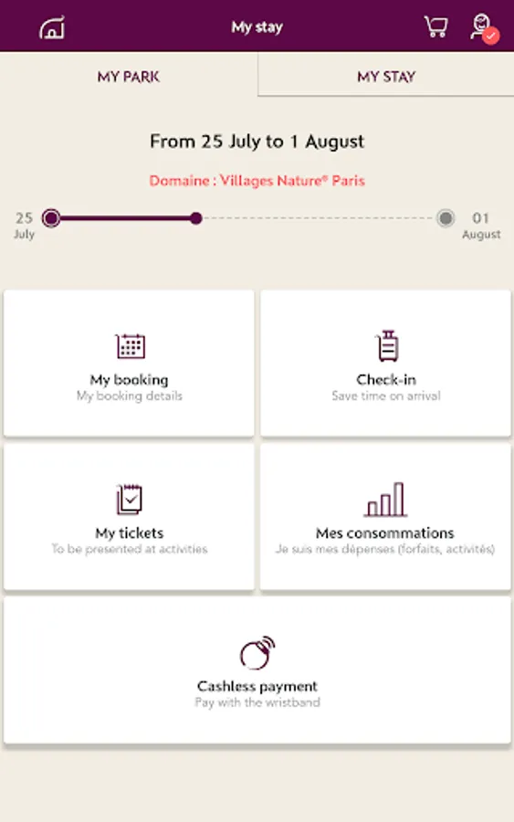 - Check all the information relating to your stay at a glance