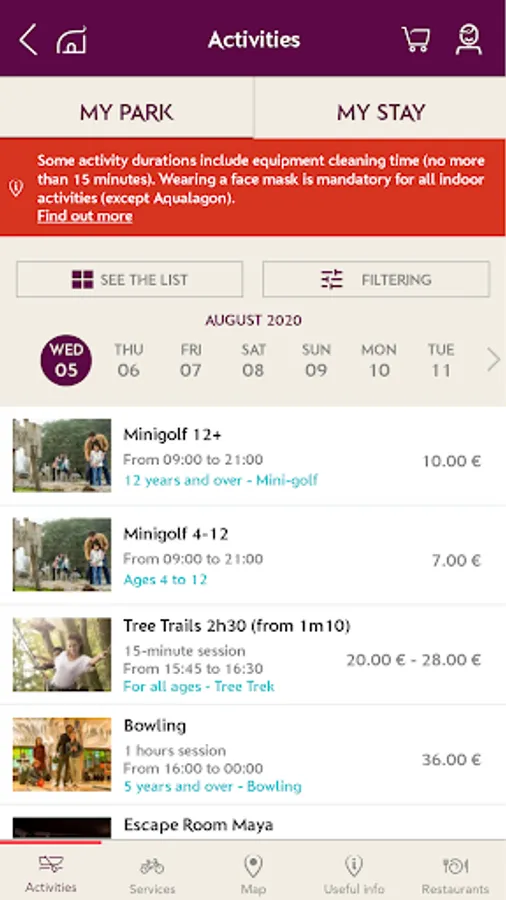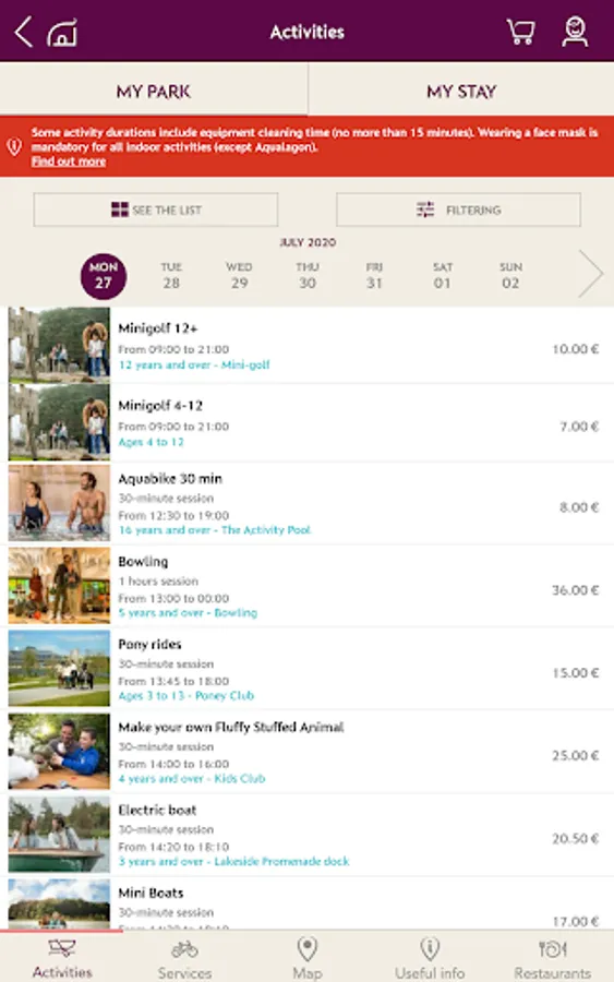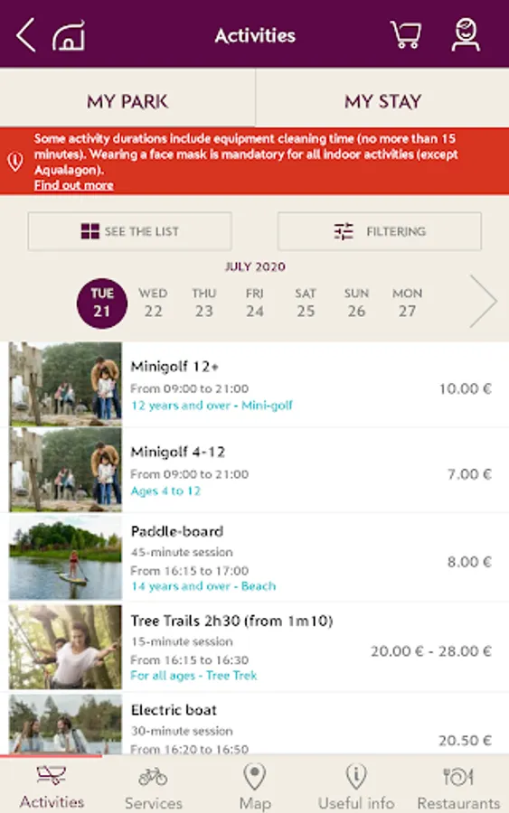 - Better organise your stay by checking and booking your activities