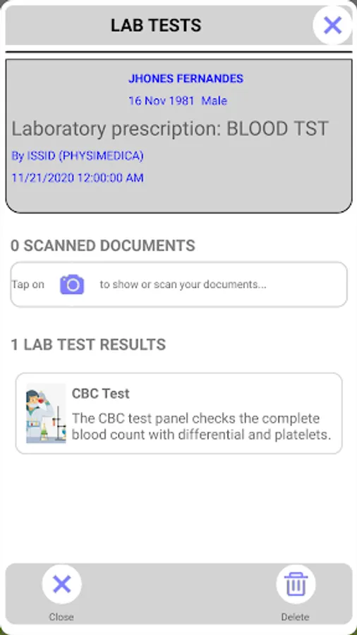 - You archive and manage any kind of Laboratory test in an easy way in one place.