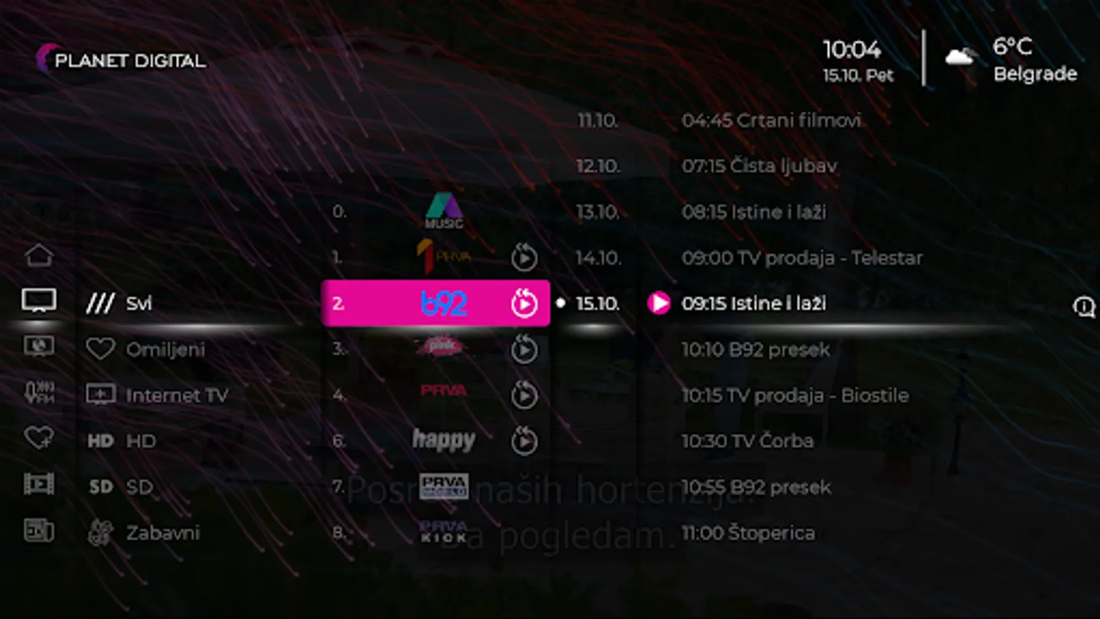 Planet Digital is an application that allows you to watch live the most popular TV channels via mobile devices (smartphone, tablet), desktop and laptop computers (PC, Mac), smart and Android TVs.