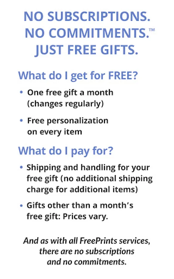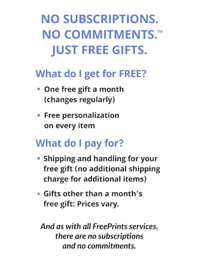 And as with all FreePrints services, there are no subscriptions and no commitments.