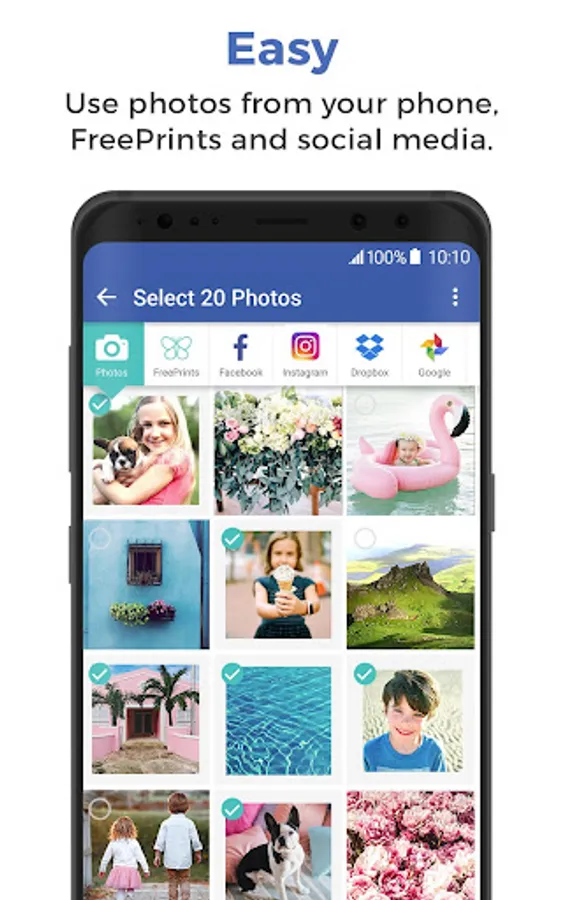 ★ Add photos from just about anywhere—your device or sources like Facebook, Instagram, Dropbox and previous FreePrints orders.