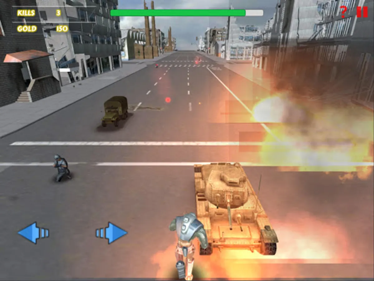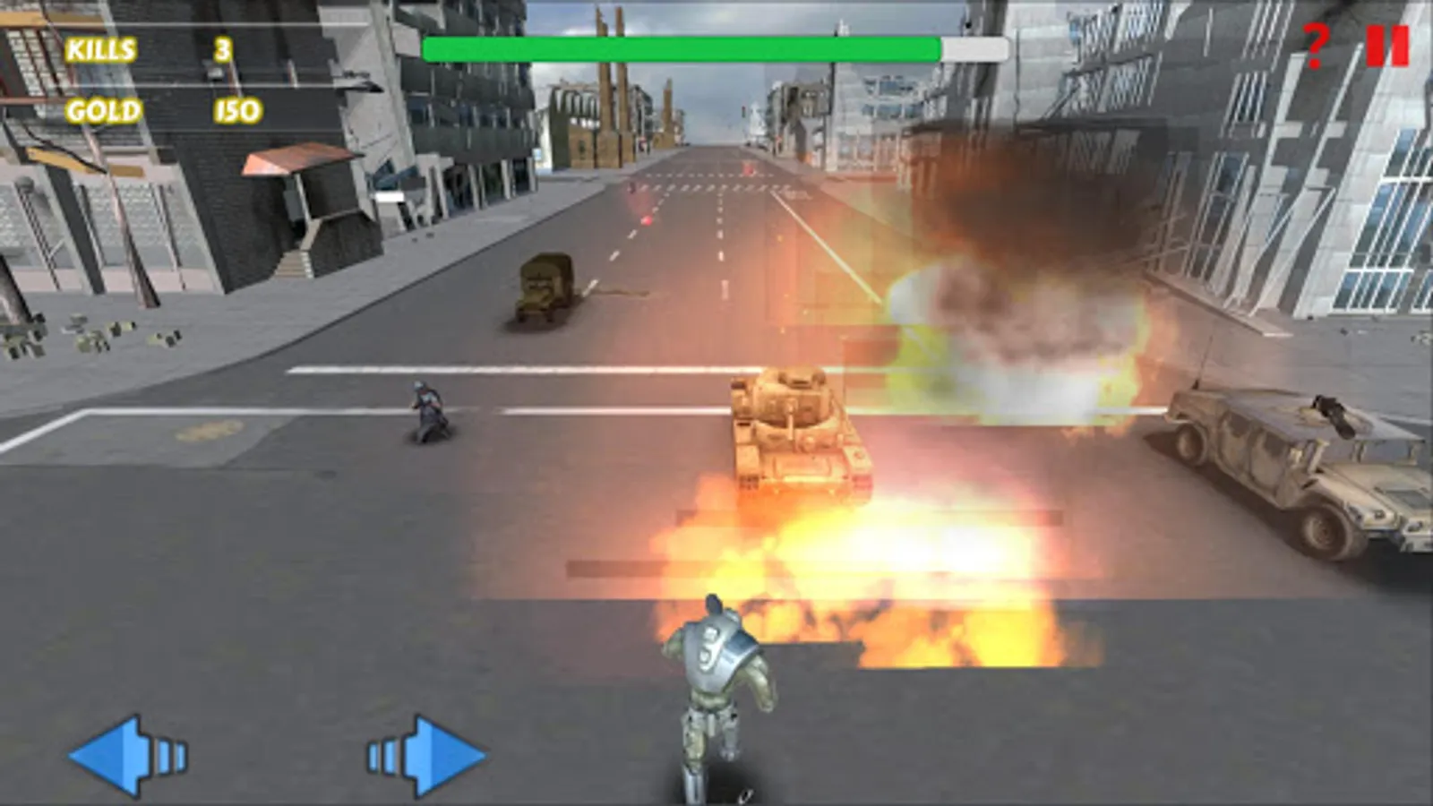 Yourself is brave, patriotic and dutiful army commando who is assigned a mission to chase and shooting enemy tank, car that are carrying enemy force. The fast super heroes man commander has to run in to fire dead road and shooting all racing enemy tank, car, humvee jeep as well. Control your super heores man running fast and shooting all enemy racing car, tank, humvee jeep blow the enemy car away.