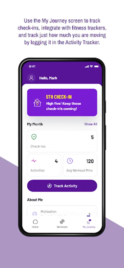 Activity Tracking with My Journey: Check out the My Journey screen to track check-ins, integrate with fitness trackers like Apple Health, and track just how much you’re moving by logging it in the Activity Tracker.