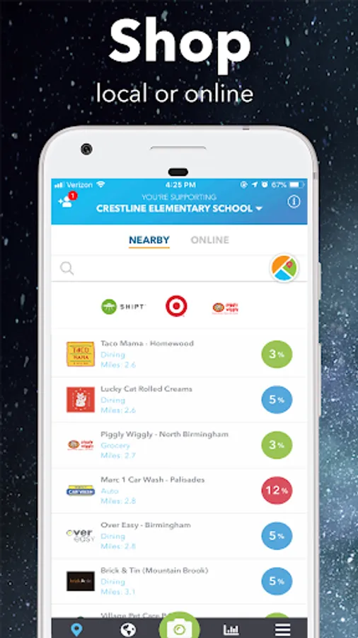 Simply shop at any participating local or online business, confirm your receipt in the app, and a portion of your purchase is donated to your cause of choice!