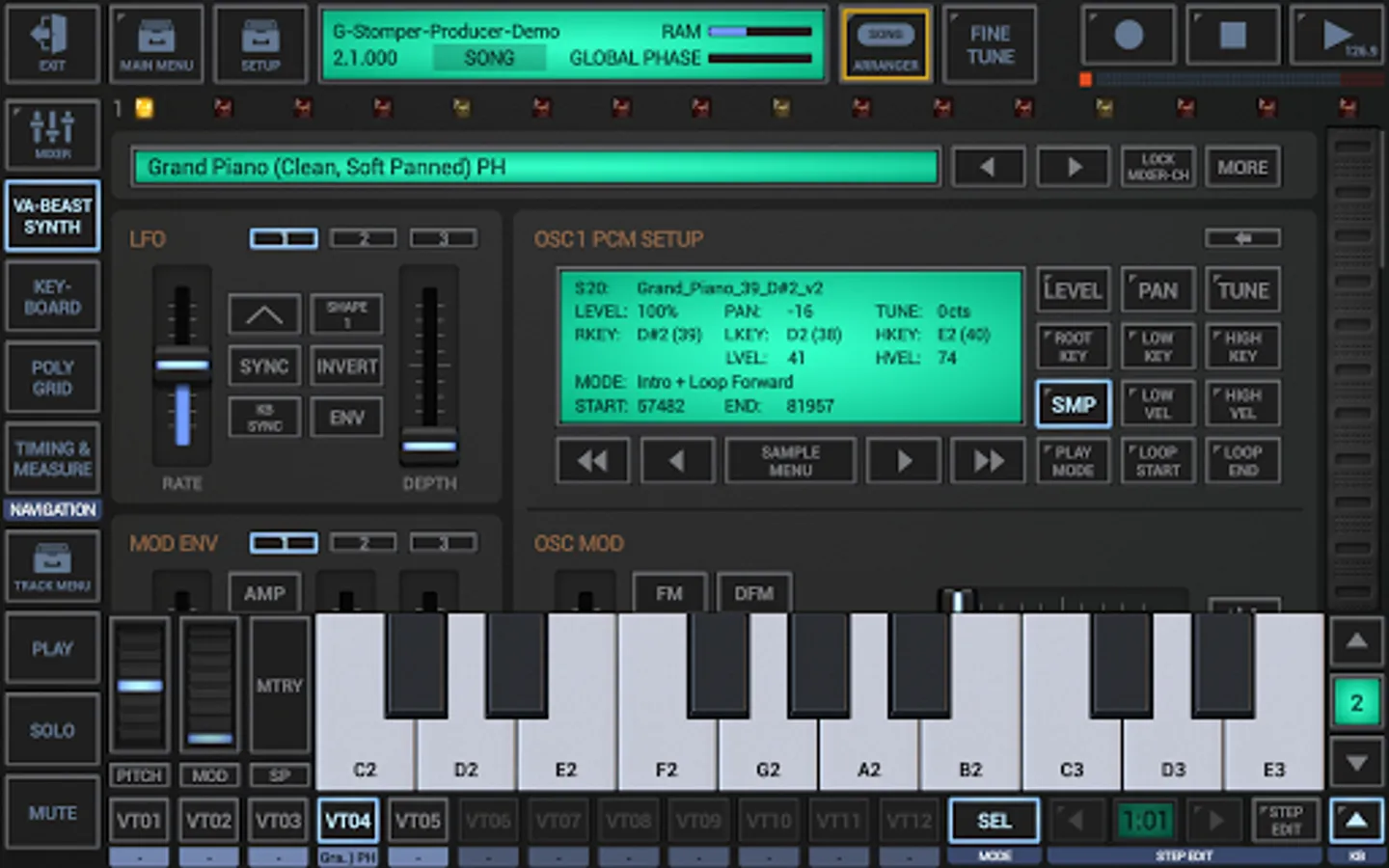 G-Stomper Producer is a fast and flexible Music Sequencer and Digital Audio Workstation, designed for use in live performance as well as for production. It comes with a powerful Drum Sampler, a polyphonic and multi-timbral Virtual Analog Performance Synthesizer (VA-Beast), Sounds, Effects, Sequencers, Pads and Keyboards, a graphical Multi-Track Song Arranger, and many other creative features that help you to create your own music.