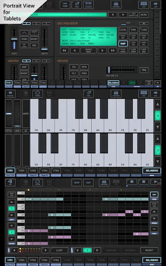 • Piano Keyboard : On various Screens (8 Octaves switchable)
