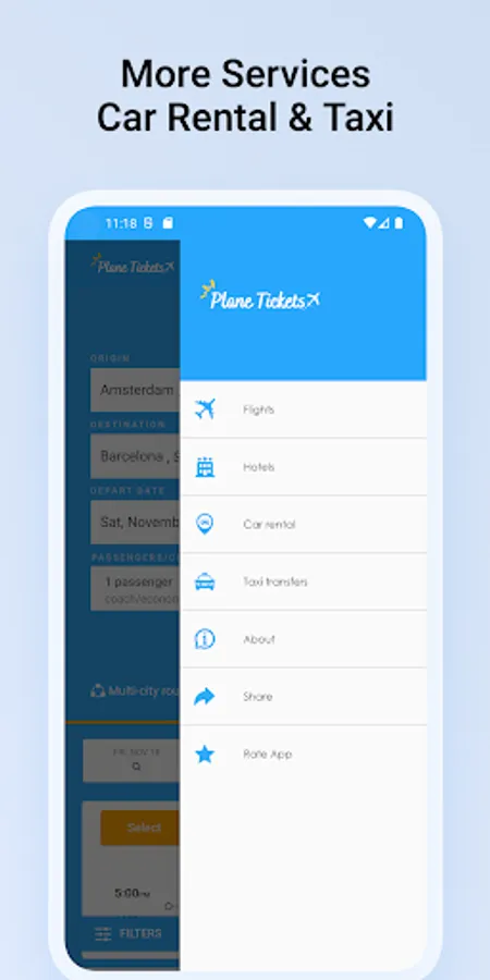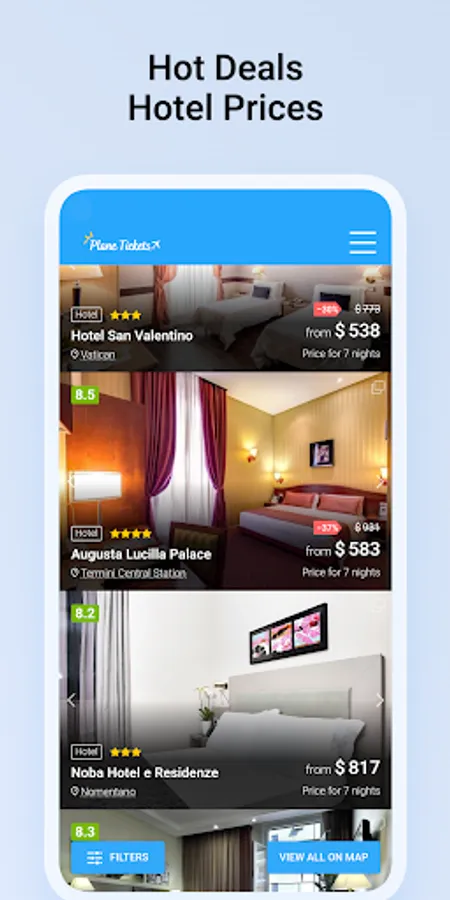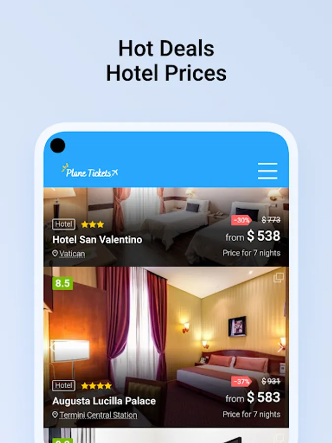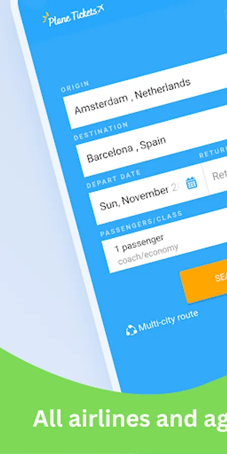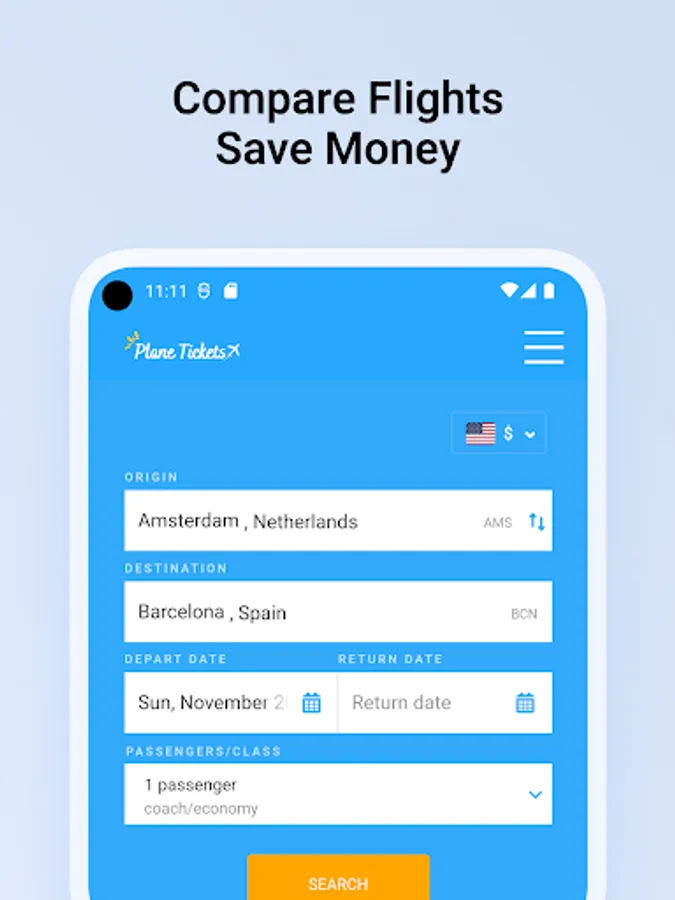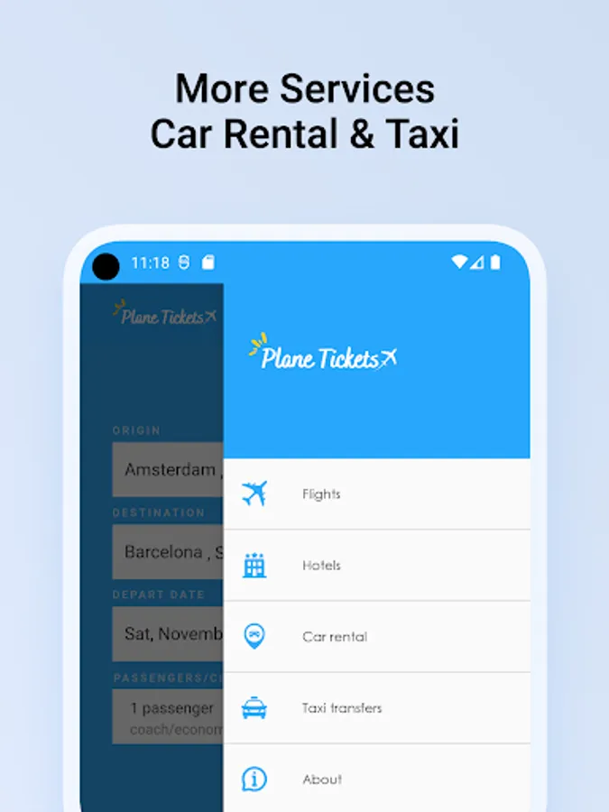 Plane Tickets app is a free and easy to use tool that allows you to compare prices for flights, hotels and other travel services: car rental, airport transfers. Simply enter your travel dates and destination and the app will search for the best deals from a variety of travel providers. You can then view all of the results in one place and book your trip at the best price.
