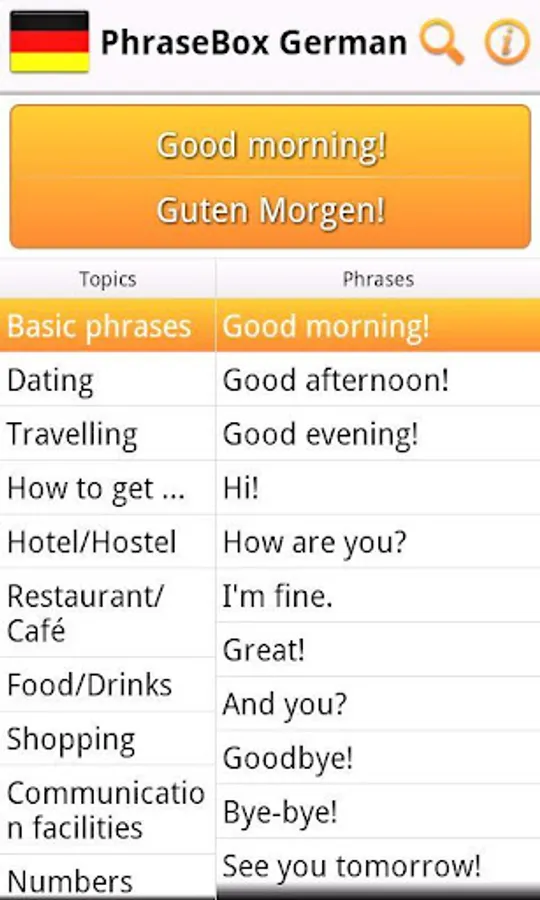 PhraseBox German - phrasebook for Android.