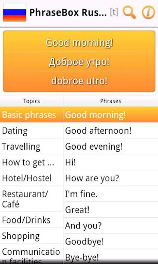 PhraseBox Russian - phrasebook for Android.