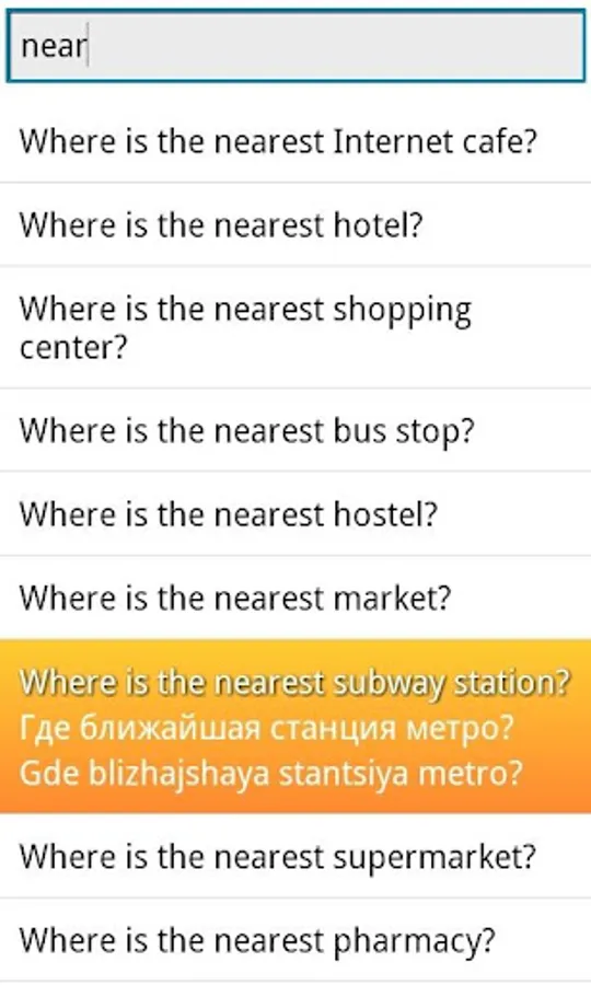 * Quick search of phrases by keywords. Input a part of word and the app will show you all phrases with this word in all forms.