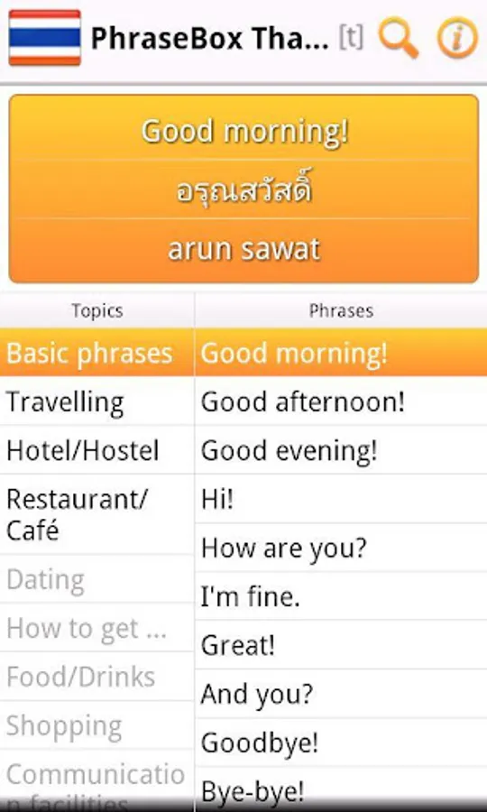 PhraseBox Thai - phrasebook for Android.