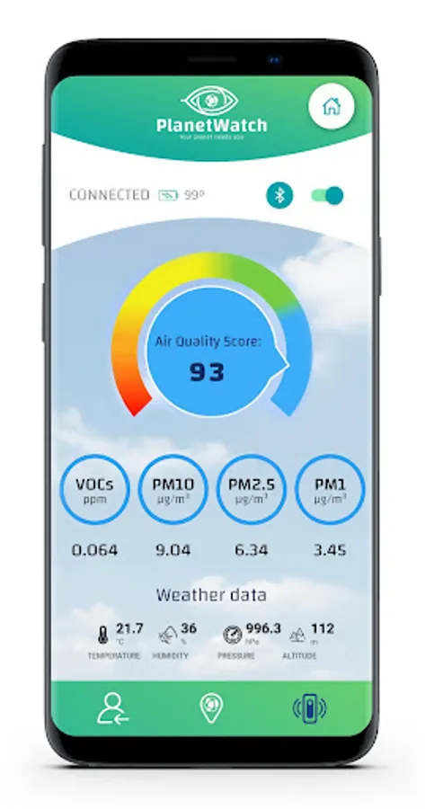 - Monitor Air quality around you (PM1, PM2.5, PM10, VoC)