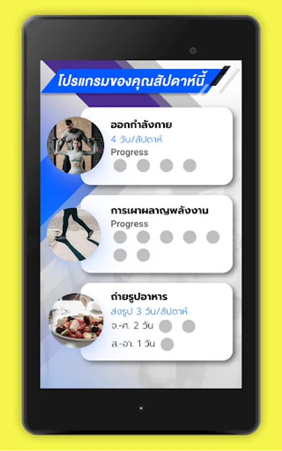 ⁃ โปรแกรมการออกกำลังกาย และการติดตามความก้าวหน้าในการพิชิตผลลัพธ์ของคุณ