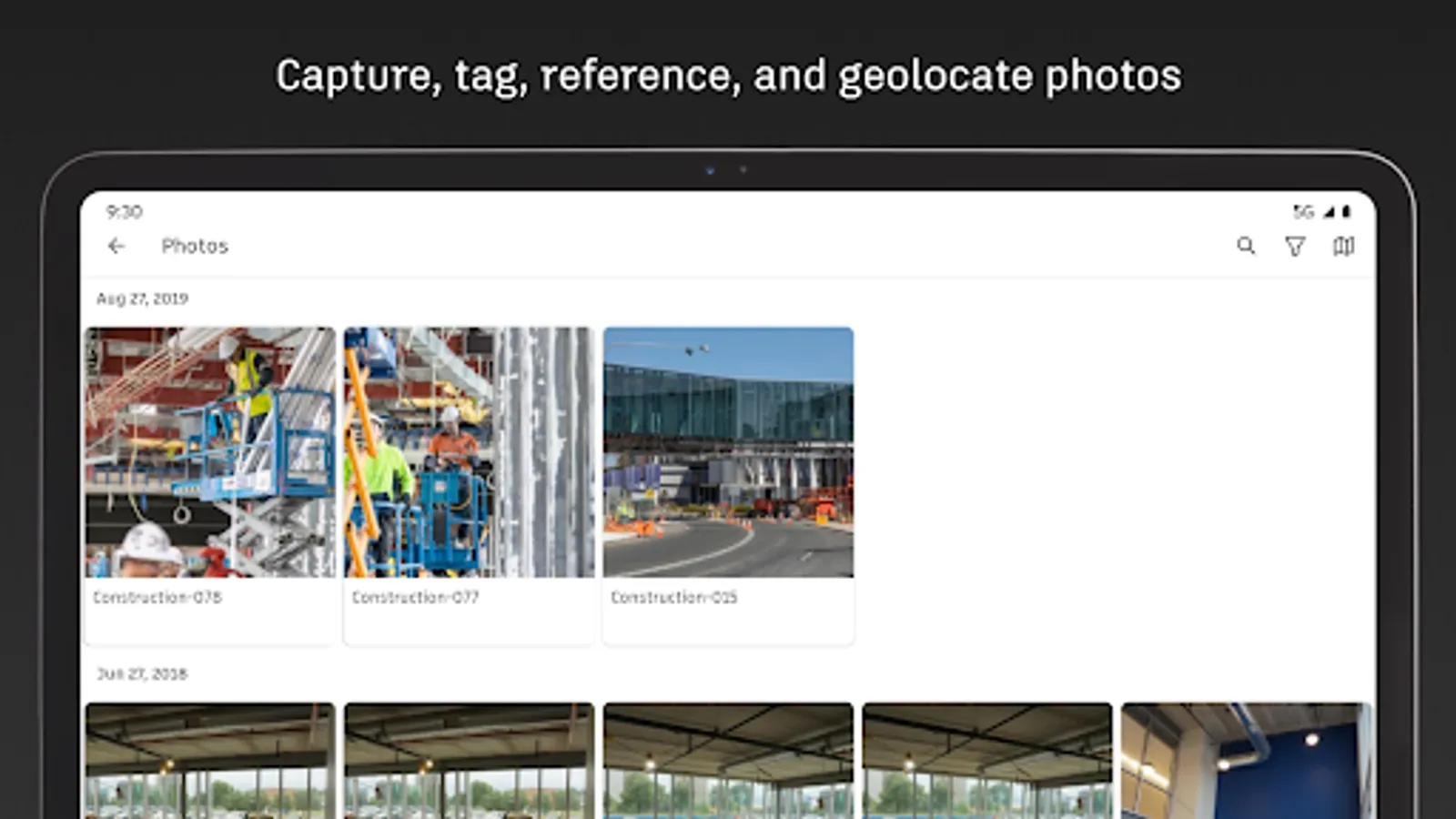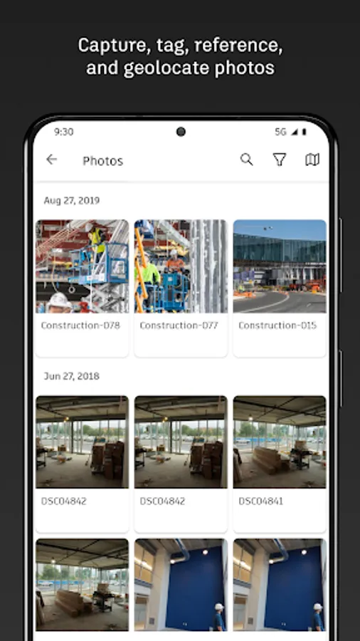 Use photos to track progress and add references to issues, RFIs, schedule activities, and more. With autotags and filters, quickly find the photo you need.